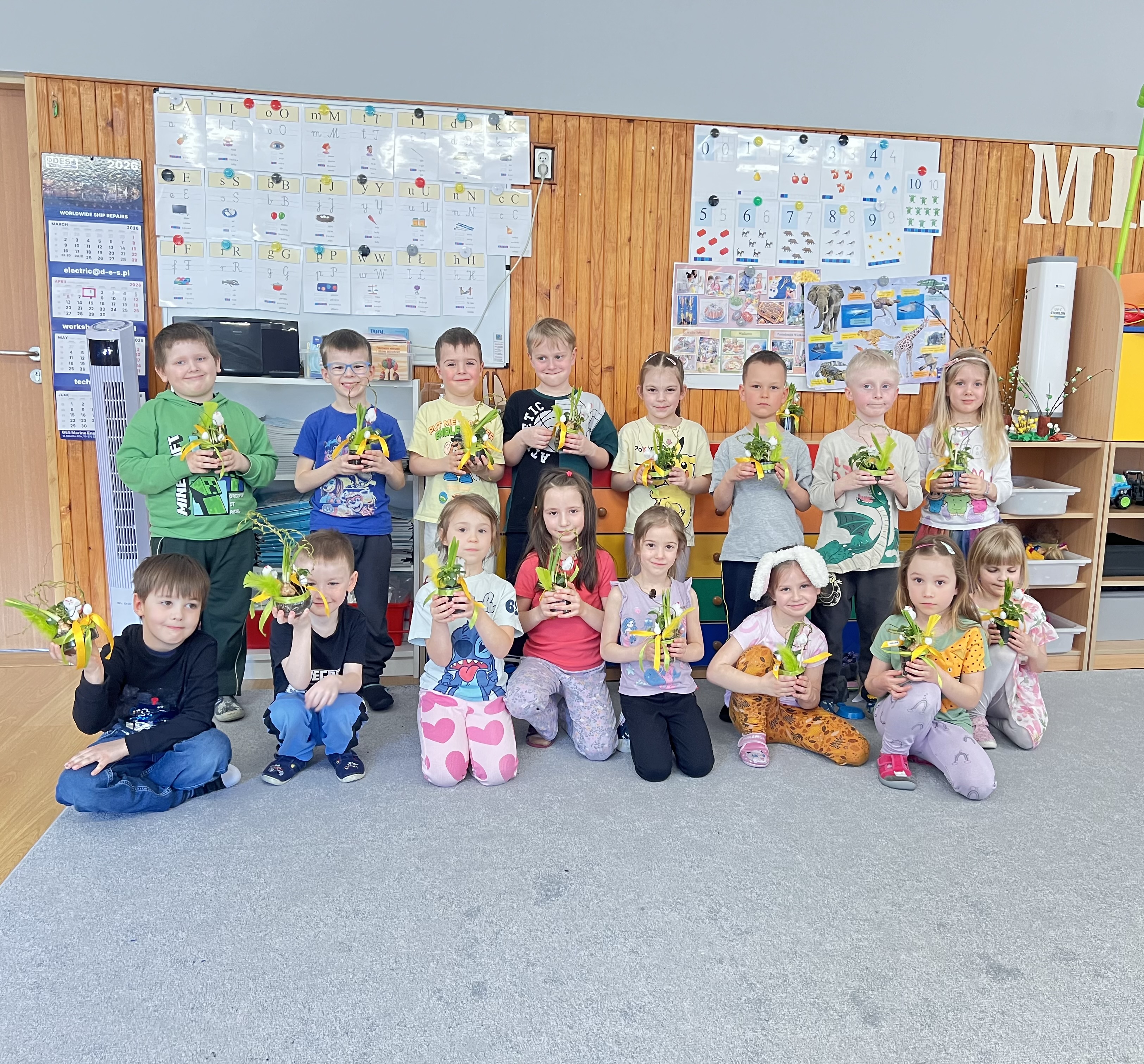 Dodatkowo wprowadziliśmy dyżury - w każdym tygodniu wyznaczona para dzieci będzie odpowiedzialna za dbanie o nasze roślinki i ich regularne podlewanie. To świetna okazja do rozwijania samodzielności oraz poczucia odpowiedzialności.